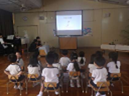 今日は、7月生まれの誕生会でした。2名の誕生児のお友達に、歌のプレセントや手作りペンダントを贈りました。もうすぐ七夕と言うことで、「おりひめひこぼし」の曲に合わせて、親子・友達と触れ合い遊びも楽しみました。