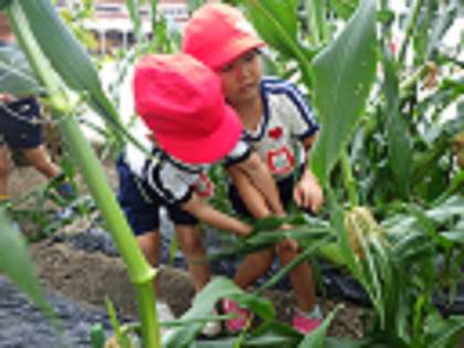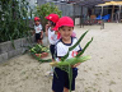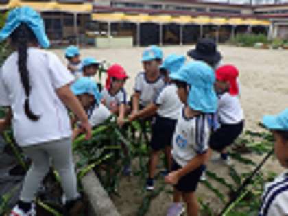 子どもたちで収穫をして、最後は畑にしっかりと根をはった茎をみんなで力を合わせて”うんとこしょどっこいしょ”と抜きました。今年は、大小合わせて50本ほどのトウモロコシがしゅうかくできました!