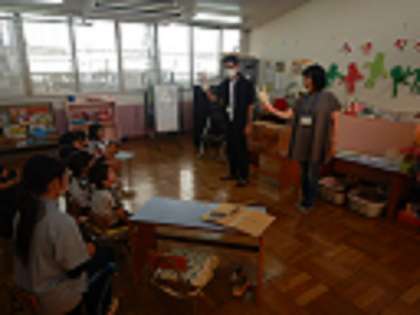 今日はお話の会がありました。平野区図書館のボランティアの方4名が来られ、そら組ばら組の各クラスで絵本を読んでいただきました。子どもたちは絵本に釘付けで、終わると「楽しかった!」ととても嬉しそうでした。