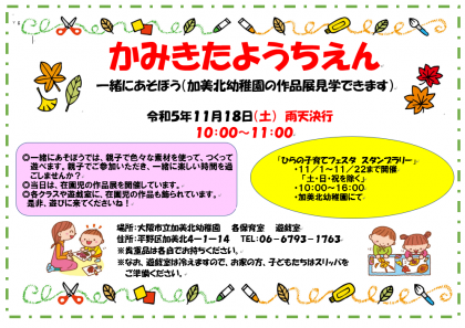 11月の一緒にあそぼうは作品展の日です。素材を使って製作をしたり、在園児の作品を見学したりできます。幼稚園の取り組みなども知る機会になると思いますので、是非ご参加くださいね!