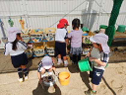 未就園のお友達に「何して遊ぶ?」と優しく声をかけ、一緒に砂場で遊びました♪