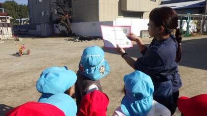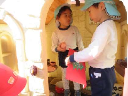 幼稚園の園庭にある家にサンタさんから手紙が届きました。