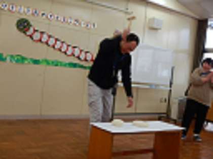 1月11日の今日、鏡開きをしました。鏡開きの由来や、飾りにも一つ一つ意味が込められているのを知り、興味津々で参加していました。職員と子どもたちみんなで健康を祈って木槌でお餅を叩き、鏡開きを終えることができました。