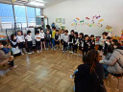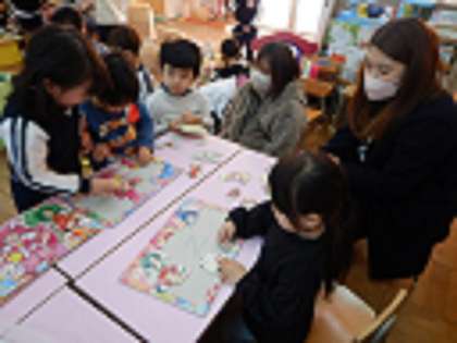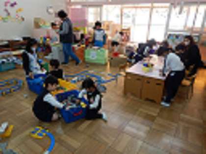 お部屋ではおままごとやお絵かき、電車のおもちゃやパズルをしたり楽しく過ごしました。最後にみんなで「春が来たんだ」を歌いました。