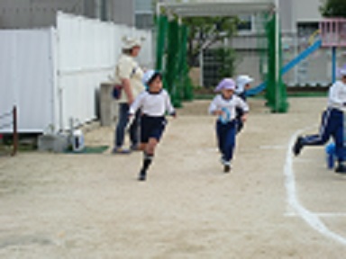 近隣の保育園の5歳児の友達が来園して、交流をしました。どちらも運動会後だったので、両園混合でチームを分けてリレーをしました。接戦となったリレーは、みんな「がんばれー!!」と一体感が出て、大盛り上がりでした。