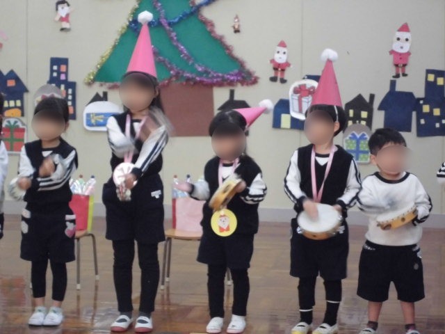 みんなでサンタッタの曲に合わせて楽器を鳴らしたり、ダンスをしたりして、誕生会を盛り上げました。