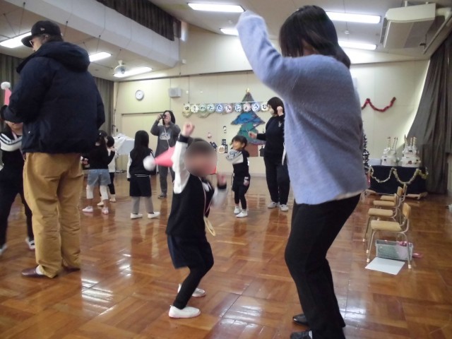 お家の方と一緒にカードにかかれた家までプレゼントを届けに行くゲームをして親子で楽しみました。