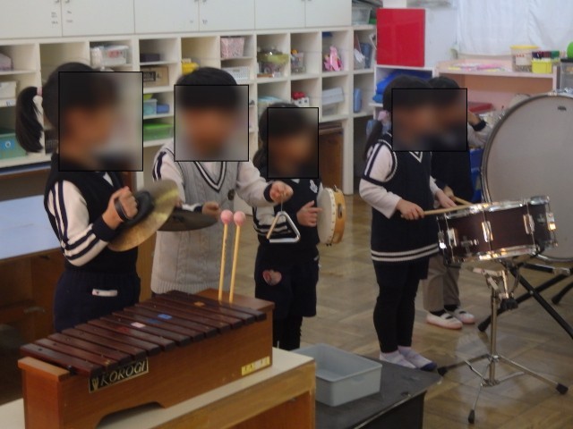 大好きな絵本の中の登場人物になって友達と一緒に、表現遊びを楽しんでいます。友達と遊ぶ中で、「こうしようよ」「このほうがいいかな」などと話し合いながら劇遊びや楽器遊びをしています。毎日、少しずつですが、表情もそして大きな声もでてきました。もうすぐ生活発表会!楽しみにしていてくださいね。