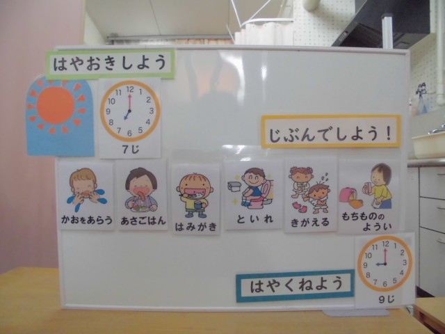 朝の支度がしっかりとできるように、朝7時に起きること、夜は9時までに寝ることを確認しましたよ。