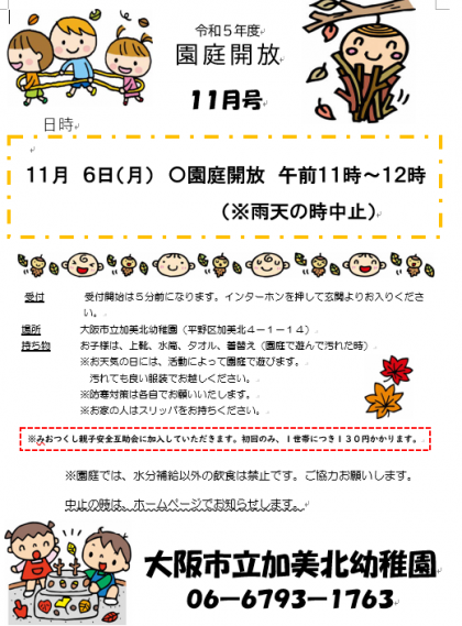 6月5日(月)に予定しておりました園庭開放は、都合により中止とさせていただきます...