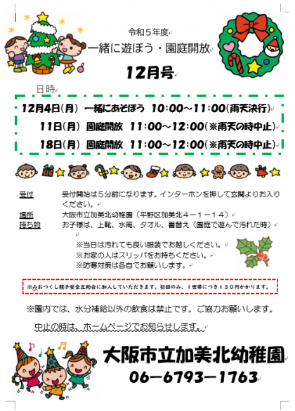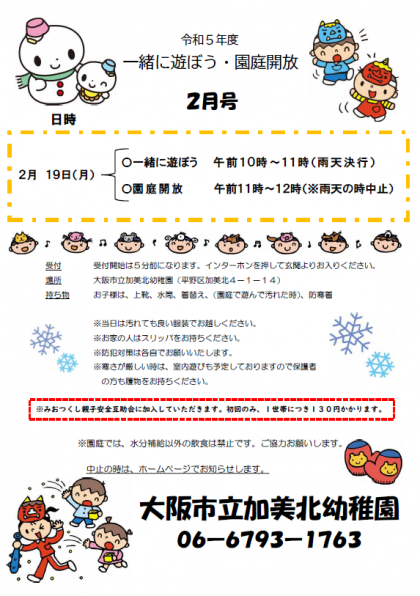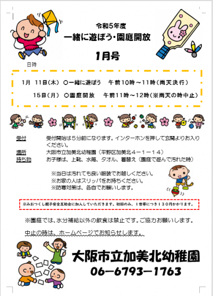 6月 一緒に遊ぼう・園庭開放 変更のお知らせ