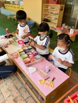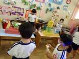 今日は、ばら組の子どもたちがお客さんになって来てくれたので、そら組の子どもたちは...