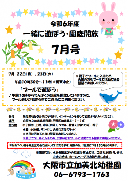 7月・9月 一緒に遊ぼう、園庭開放のお知らせ
