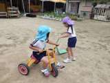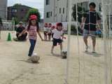 6月の一緒に遊ぼうでは、園庭で、スーパーボールすくいや泥んこ遊びなどをして在園児...
