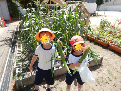 幼稚園のお庭で育ったトウモロコシやピーマン 甘くってとってもおいしいです! 今日...