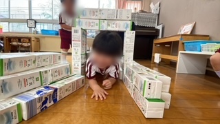 高く積んでは、倒れるのを楽しんだり、トンネルにしてくぐったりと、楽しい要素がたくさんありましたね(^-^)(『体』の育ち)