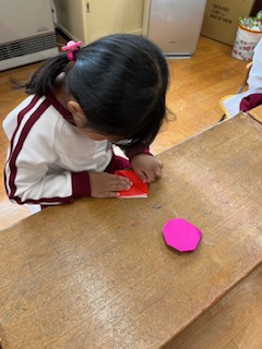 何回か折り、イチゴの形になってくると、「なんかいいにおいがしてきた〜!」という声が♪