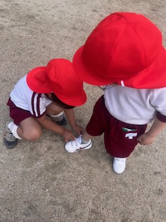 すると、それを見ていた遠くの友達が「あっ!」と、その子のそばに走って来て、「大丈夫?」と声をかけながら、靴を履くお手伝いまでしてくれました。