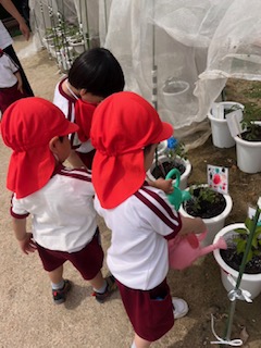 「大きくな〜れ!」と魔法の言葉をかけながら、お水やりをしている子どもたちの姿、とってもかわいいですよ〜♪
