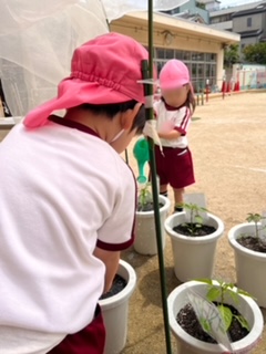 「あ!ちょっと葉っぱが大きくなった気がする!」「背が大きくなった!」などと、日々のちょっとした生長を見逃さない子どもたちの観察力は見事です♪