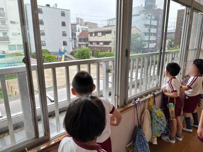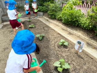 先日の大雨だった日のこと。窓から園庭を眺める子どもたちの姿があり、話を聞いてみると「雨がたくさん降ってるからこつまなんきん大丈夫かな〜って心配やねん」と心配そうに畑の方を見ていました。