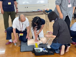 大きな事故など起こらないに越したことはないのですが、もしもの時に備えて、心肺蘇生法、AEDの使い方を教えていただきました。