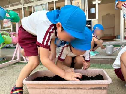 そして、今日は新たにフウセンガズラの種もまきました!「風船みたいなお花が咲くんかな?」「大きくなるのが楽しみやな〜」と期待に満ち溢れています!