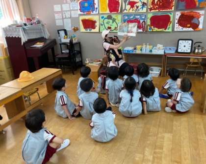 『カラーモンスター』では、ピンク色のモンスターが出てきてその色のモンスターはやさしい気持ちをもつモンスターでした。絵本の振り返りで、みんなが拍手をした時、保護者の方の「ピンクのカラーモンスターだね」という言葉にやさしい気持ちがあふれた子どもたちでした!