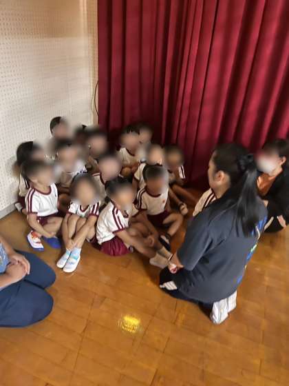 ドアが開いて、「不審者じゃないよ、園長先生でした」と、園長先生の顔が見えると、ホッとした表情になりました。