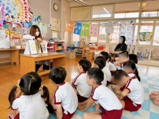 1学期最後の保護者の方による絵本の読み聞かせがあり、お二人の保護者の方に来ていただき『バスがきましたよ!』と『ゆうびんやさんおねがいね!』の2冊読んでいただきました!
