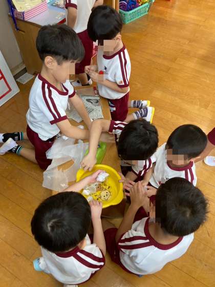 誕生会では、「おめでとう」とお祝いの気持ちをこめて誕生児にプレゼントを渡していました!おうちで、遊んでくださいね♪
