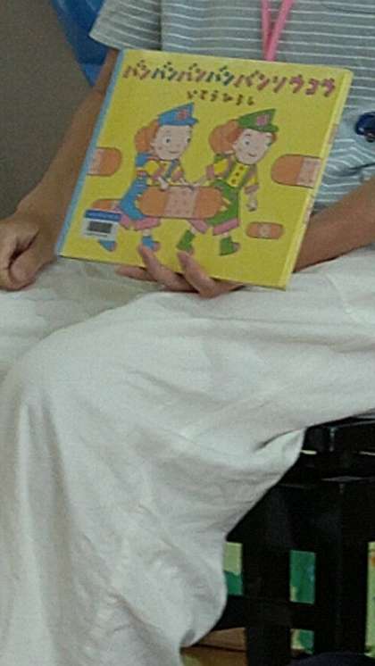 「バンバンバンバンバンソウコウ」は、いろんなところにバンソウコウを貼る話で、とても愉快なお話でした。みんなで「バンバンバンバンバンソウコウ」と言いながら、楽しみました。