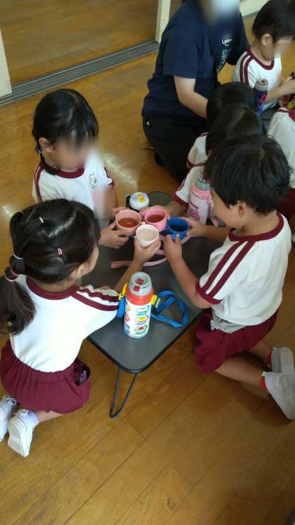 難しい水筒の使い方も自分で使えるようになって、友達と「かんぱ〜い!」と楽しみながらの飲んでいました♪