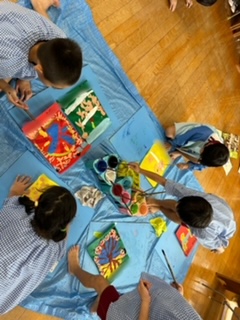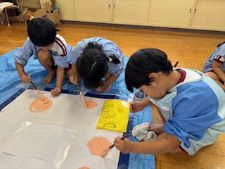 それぞれ運動会ごっこの好きな場面の絵を一つ一つ丁寧に絵の具を使ってかいていました!