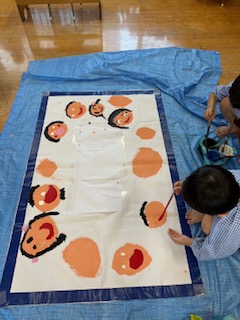 「パラバルーンみんなでしてるところすきやねんなー!」「私は綱引きしてるところ!お客さんもたくさん応援してくれているねん!」「私は下駄で遊んでいるところ!」など小さな紙に子どもたちの思いがたくさん詰まっていました!完成は当日を楽しみにしていてください!