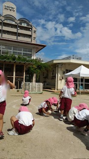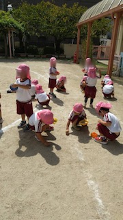 石でつまずかないように、ころんだときに怪我に繋がらないように、話をしてから始めました。
