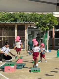 桃組の子どもたちは、遊園地のイメージの中でサーキット遊びをしました。