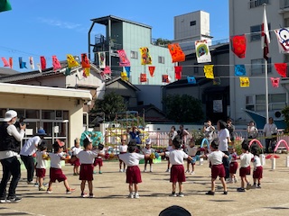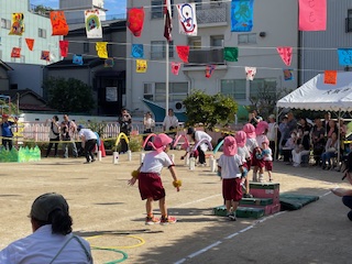 「むっくりくまさん」の遊びでは、くまさん(担任)に見つからないようにかくれ、見つかった時の「キャー」と言う子どもの表情もとても可愛かったです!