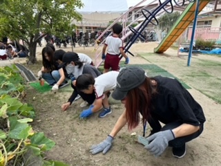 今日はおうちの方と一緒に、冬野菜の苗を植えました。