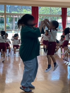 保護者の方と誕生児とのふれあい遊び「おおきくなったら」では、保護者の方に抱っこしてもらったり、一緒に踊ったりしたことがとても嬉しかったようで、楽しそうな姿が微笑ましかったです♪