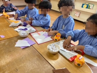つくっている時に、「お芋掘り楽しみ」と期待を高める姿があったり、「お芋見てるとお腹へった」とお腹を空かせる姿もありお芋に親しみをもって仕上げていました!