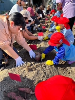 お家の人と一緒にいろいろな形、大きさのお芋を掘ることができ、保護者の方と子どもたちの感動も大きかったことでしょう!