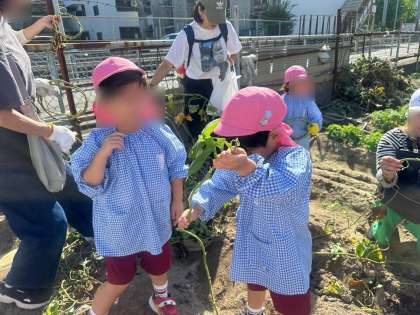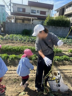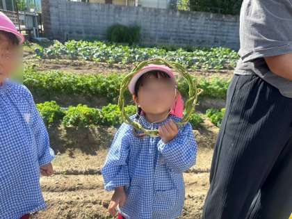 芋のつるを使ってのリースづくり、子どもたちには少し難しいので、お家の方と一緒につくりました。