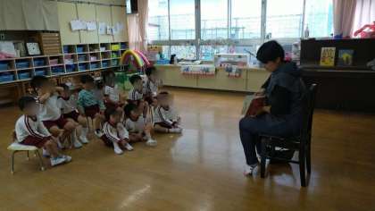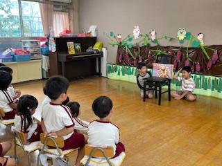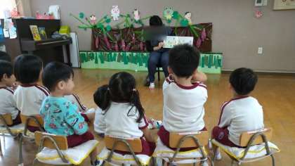 3歳児にとっては、少し長い話でしたが、子どもたちは、興味をもってよく見ていました。