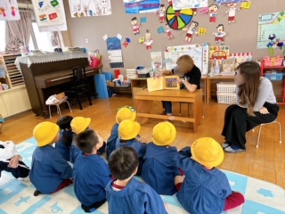 子どもたちが楽しみにしている月に一度の絵本の読み聞かせの日!