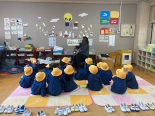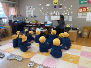 PTAの方の絵本の読み聞かせ(4歳児・赤組)