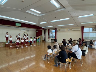 その後は、音楽会に向けて取り組んでいるあお組(5歳児)の歌を聴いてもらいました。