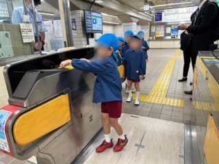 子どもたちはあまり馴染みのない経験にドキドキワクワク!恐る恐るボタンを押したり、改札口から出てくる切符を忘れないように取ったりととても嬉しそうでした!