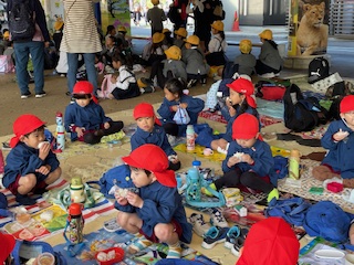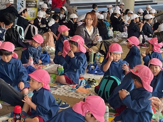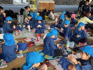 お昼は、保護者の方が作ってくださったおにぎりをみんなでいただきました。