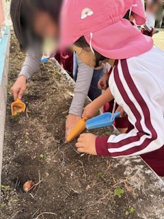 きれいになった花壇には、チューリップの球根を植えました。